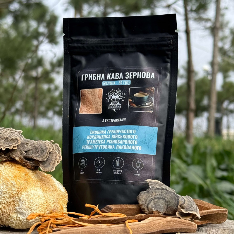 Грибной кофе (зерновой молотый), "Лесовик", 50 грамм