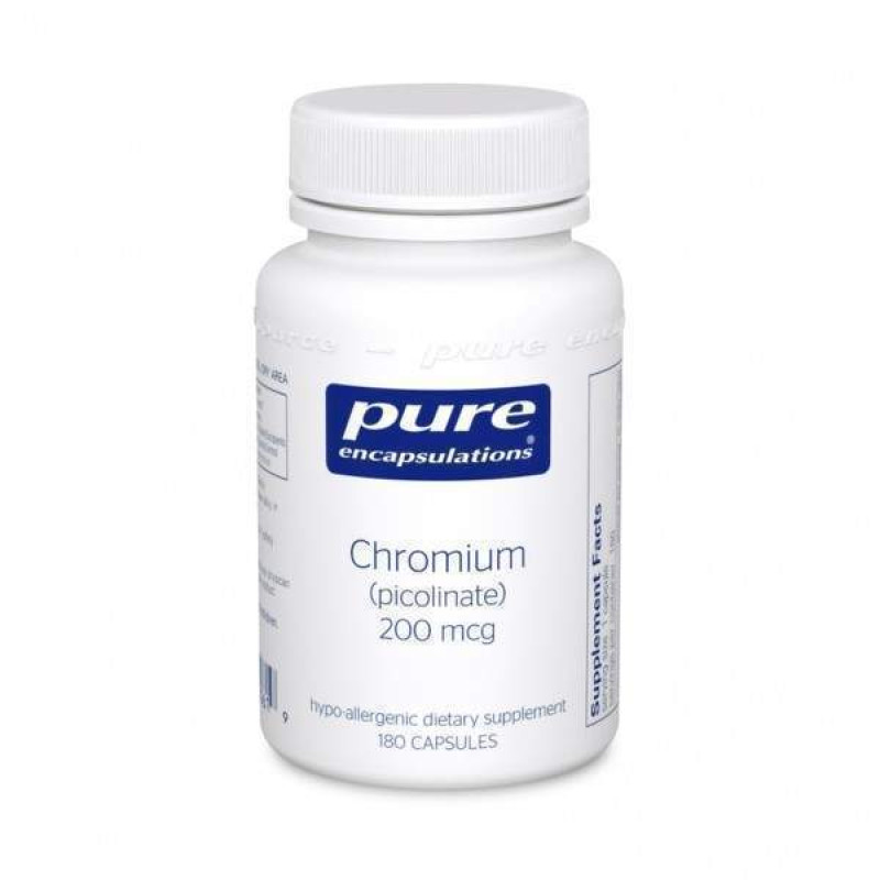Хром (пиколинат), Chromium (picolinate), Pure Encapsulations, для поддержки здорового метаболизма липидов и глюкозы, 200 мкг, 180 капсул