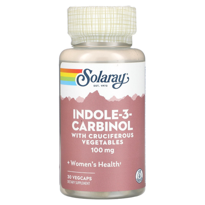 Индол-3-карбинол, поддержка баланса эстрогена, Indole-3-Carbinol, Solaray, 100 мг, 30 вегетарианских капсул