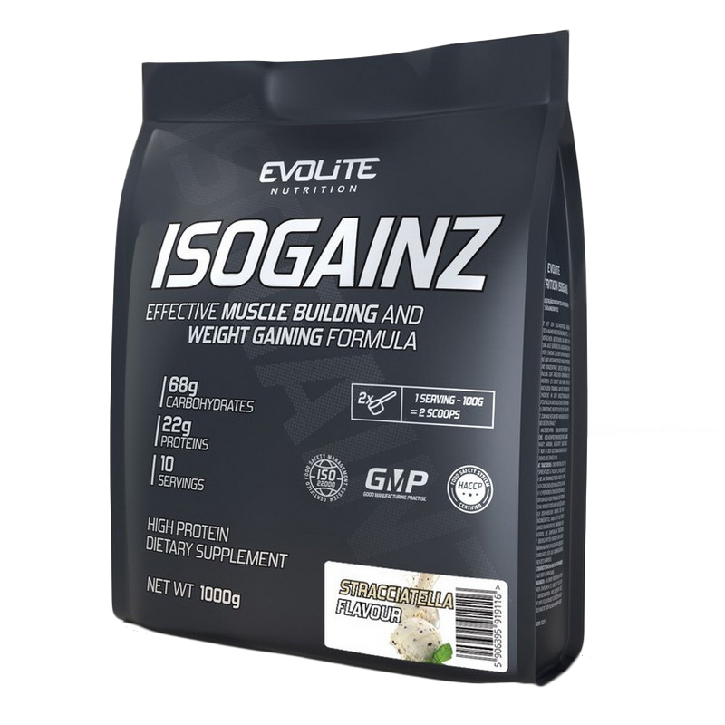 IsoGainz от Evolite Nutrition – высококачественная белково-углеводная добавка, в состав которой входят: правильно подобранные углеводы; изолят белка высокого качества; полезный концентрат сывороточного протеина. Гейнер – это углеводно-белковая добавка. Он предназначен для обеспечения необходимыми питательными веществами для регенерации и построения мышечных клеток, благодаря чему способствует наращиванию мышечной массы. Благодаря своему составу его часто используют люди, у которых есть проблемы с добавлением ингредиентов из обычных блюд из-за их объема. Он используется в качестве замены еды или в качестве профицита калорий. Простой способ использования позволяет приготовить калорийный напиток дома, на работе, в школе или после тренировки. IsoGainz от Evolite Nutrition – это инновационная добавка, разработанная для максимального стимулирования мышечного роста и оптимизации восстановления. Эта формула объединяет высококачественные изоляты сывороточного белка и дополнительные аминокислоты, обеспечивая полный спектр необходимых питательных веществ для эффективного восстановления и роста мышц после тренировок. IsoGainz поддерживает азотный баланс, повышает синтез белка и помогает достичь максимальных результатов в вашей тренировочной программе. Эта добавка становится ключевым компонентом вашего пути к силе, размеру и оптимальной форме. Как принимать добавку Смешайте одну порцию (3 мерные ложки - 100 г) с 300 мл обезжиренного молока или воды. В дни тренировок принимайте 1-2 порции между едой и 1 порцию после тренировки. Вкусы Chocolate, Chocolate Peanut Пищевая ценность 100 г Калорийность 410 ккал Жиры 2,25 г из них насыщенные жиры 0,65 г Углеводы 67,15 г из них сахара 4,76 г Протеин 22,22 г Соль 0,07 г Состав Мальтодекстрин, изолят сывороточного белка (из молока), концентрат сывороточного белка (из молока), какао, ароматизаторы, подсластитель: сукралоза. Аллергены: молоко. Фасовки 1 кг - 10 порций, 4 кг - 40 порций.