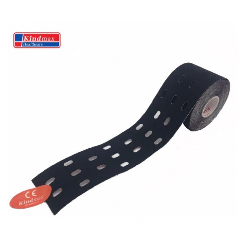 Перфорированный кинезио тейп Kindmax имеет отверстия размером 5x6мм, которые способствуют большему проникновению воздуха к коже, лучшему отведению влаги, улучшению лимфодренажных свойств из-за разницы давления поверхности тейпа. Кожа и фасции получают значительно больше сигналов, посредством образования разницы давления между участками. За счет меньшей площади соприкосновения клеящего основания с кожей подходит для применения на более чувствительных участках кожи.