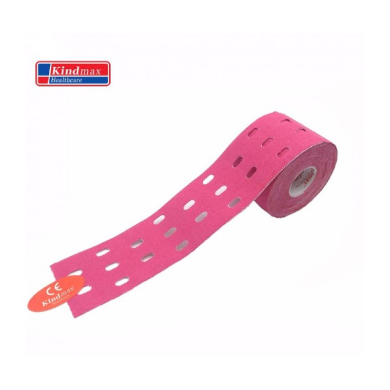 Перфорированный кинезио тейп Kindmax имеет отверстия размером 5x6мм, которые способствуют большему проникновению воздуха к коже, лучшему отведению влаги, улучшению лимфодренажных свойств из-за разницы давления поверхности тейпа. Кожа и фасции получают значительно больше сигналов, посредством образования разницы давления между участками. За счет меньшей площади соприкосновения клеящего основания с кожей подходит для применения на более чувствительных участках кожи.