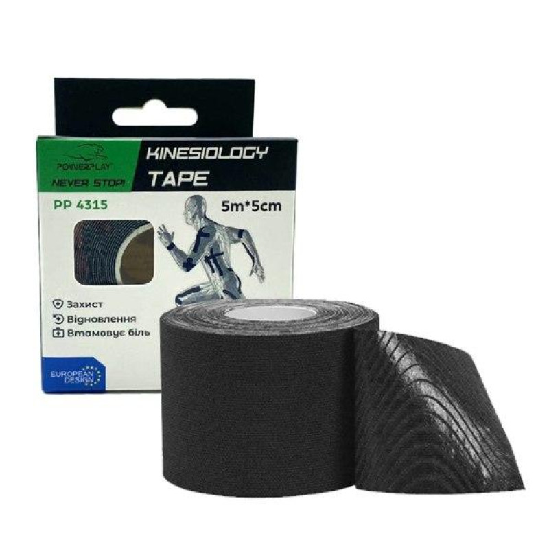 Кінезіологічний тейп PowerPlay 4315 Чорний 5cм*5м