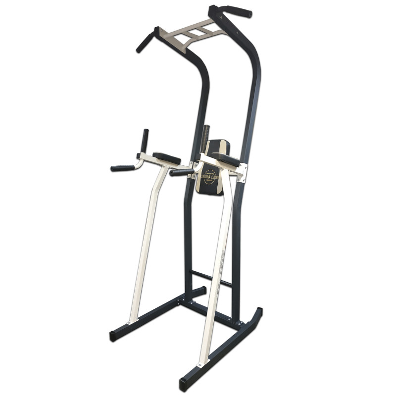 Комбинированный станок InterAtletika HL007 собрал в своей конструкции несколько элементов, что позволяет предоставить нагрузки на крупные группы мышц в домашних условиях на минимальной площади: турник, брусья и тренажер для пресса с упором на руки.