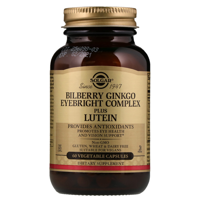 Комплекс для Зору з Чорницею, Очанкою, Гінкго і Лютеїном, Eyebright Complex, Solgar, 60 капсул