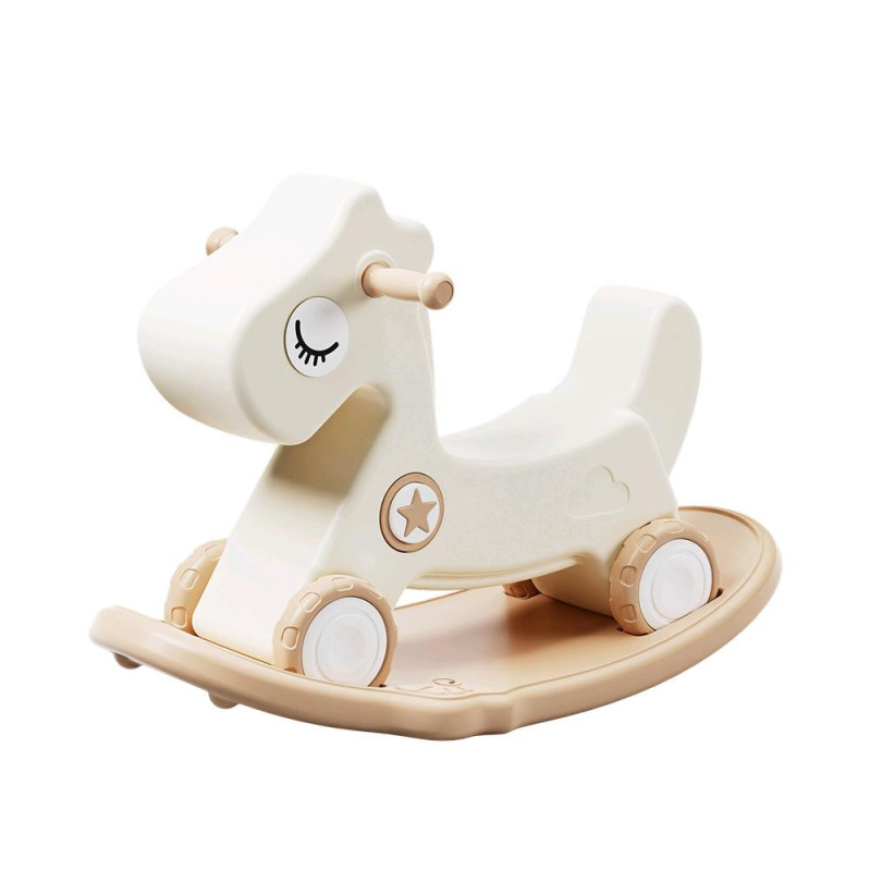 Коник легкий та округлий, тому не варто турбуватися про випадкові травми. Пластиковий матеріал нешкідливий, і нічого не трапиться, якщо дитина почне його гризти. Під час гойдання колеса міцно закріплені у вигнутій основі та не скочуються. Це робить її ідеальною іграшкою навіть для турботливих батьків!