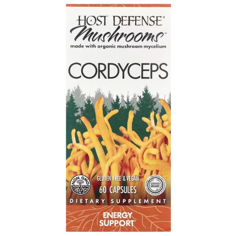 Кордицепс, Cordyceps, Fungi Perfecti, Host Defense, для защиты организма, энергетическая поддержка, 1 г, 60 вегетарианских капсул