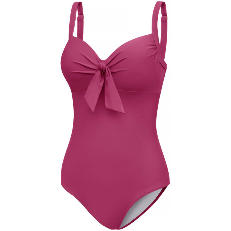 Витончений суцільний купальник, створений для комфорту та підтримки повних фігур, поєднуючи стиль і функціональність. Оснащений вбудованими чашками на кісточках з дротом для максимальної підтримки грудей, регульованими лямками. Деталі на бюсті та бант підкреслюють її вишуканість. Виготовлений зі стійкої до хлору тканини VITA, що складається з 78% переробленого поліаміду та 28% еластану, цей купальник гарантує довговічність і класичний вигляд. Повна спина та середній виріз забезпечують комфорт і покриття, що робить цей одяг придатним для різноманітних водних розваг, таких як плавання, водна аеробіка та розслаблюючі дні на пляжі. Найважливіші особливості купальника: Трикотаж VITA (78% перероблений поліамід, 28% еластан) Висока стійкість до хлору Вбудований бюстгальтер з жорсткими чашками і кісточками Регульовані бретелі Елегантна драпірування матеріалу на грудях Повна спина Підкладка спереду і ззаду костюма