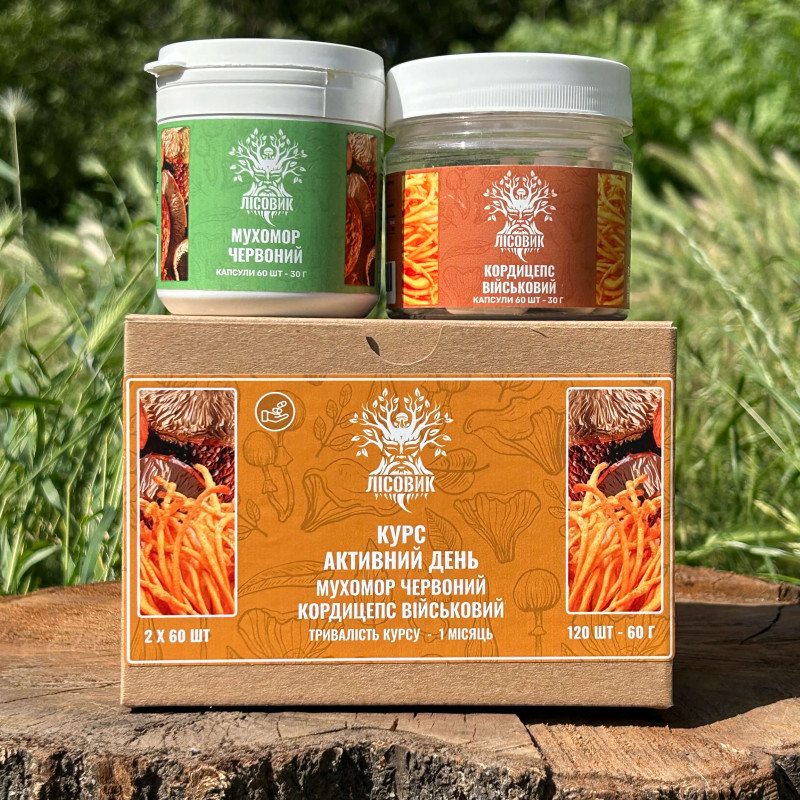 Курс «Активный день»: Кордицепс и Мухомор красный (1 месяц), «Лесовик», 120 капсул