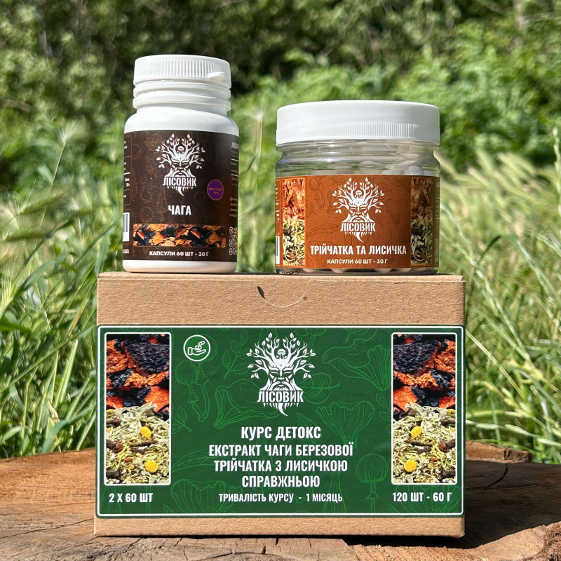 Курс Детокс: Чага, Тройчатка и Лисичка (1 месяц), "Лесовик", 120 капсул
