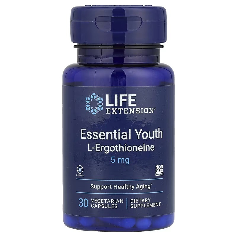 L-эрготионеин и молодость, 5 мг, Essential Youth L-Ergothioneine, Life Extension, 30 вегетарианских капсул