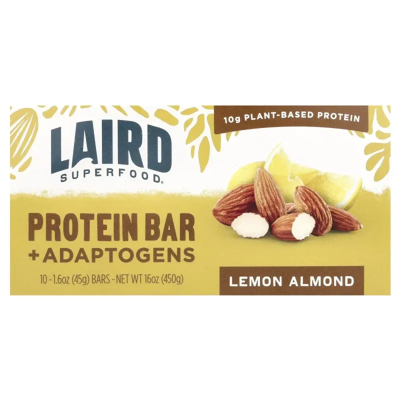 Laird Superfood, Protein Bar + Adaptogens, Lemon Almond, 10 Packs, 1.6 oz (45 g) Each