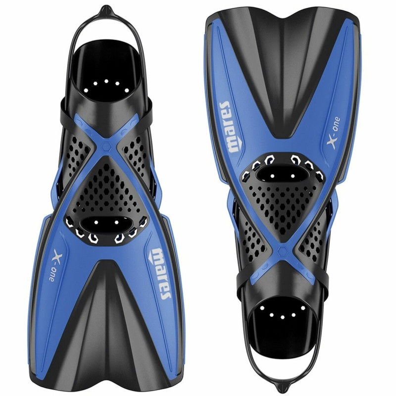 Ласти Mares X-One створені для снорклінгу, відмінно підходять для плавців-початківців і дітей. Вони мають зручну калош для ноги, еластичний ремінець кріплення на п'яту, коротку лопасть. Отвори на калоші для ніг допомагають зменшити парашутний ефект при якому потік води у калоші сповільнює рух.