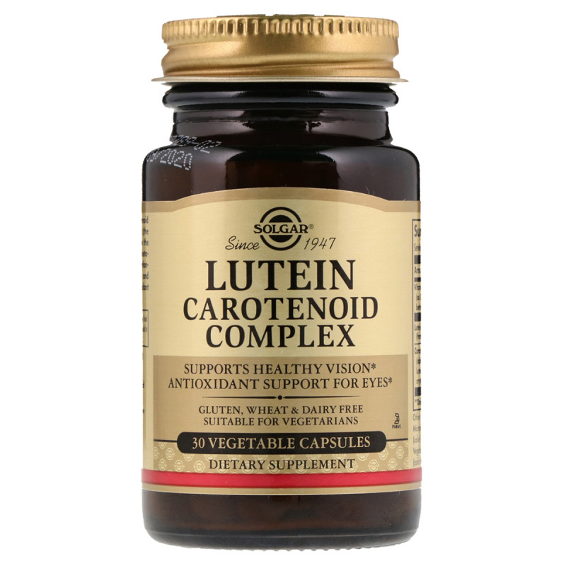 Комплекс для підтримки зору від Solgar містить велику кількість бета-каротину (вітамін А), а також лютеїну і каротиноїдів. Лютеїн підтримує здорову функцію очей і покращує гостроту зору. Цей мікроелемент є основним каротиноїдом, виявленим у людей. Він високо концентрований в сітківці ока. Лютеїн працює синергетично, щоб поліпшити здоров'я очей. Він також є потужним нейтралізатором вільних радикалів, які грають роль в антиоксидантному захисті організму.