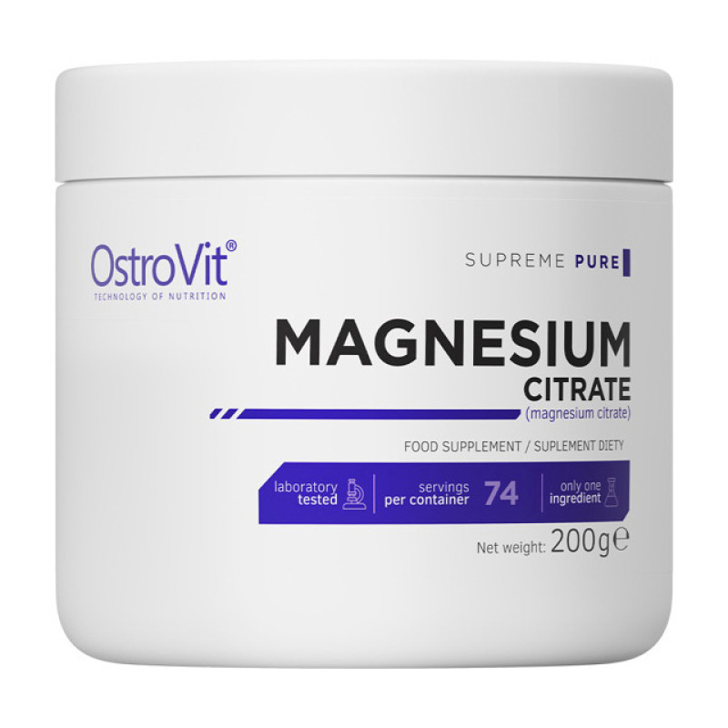 OstroVit Supreme Pure Magnesium Citrate – это порошкообразная пищевая добавка. Она содержит только один компонент – цитрат магния, где другие ненужные наполнители, такие как консерванты и ароматы, были специально исключены из производства. Его микронизация была разработана с высоким уровнем фармацевтической фрагментации. Добавка обеспечивает идеальную биодоступность и растворимость. Простота и высокое качество в одном - Supreme Pure.