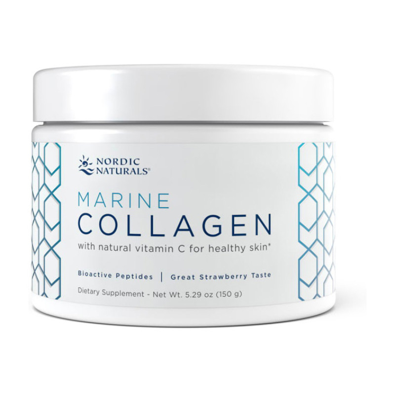 Marine Collagen от марки Nordic Naturals поставляет биологически активные пептиды коллагена типа 1 из устойчивой, выловленной в дикой природе арктической трески. Эти небольшие гидролизованные пептиды легко абсорбируются и помогают стимулировать собственные клетки, вырабатывающие коллаген. Коллаген является структурным белком, который обеспечивает прочность, эластичность и гибкость для кожи, суставов и костей. Добавленный натуральный витамин С из плодов ацеролы обеспечивает антиоксидантную поддержку и способствует нормальному образованию коллагена. Marine Collagen обладает мягким клубничным вкусом и легко растворяется в теплой или холодной жидкости.