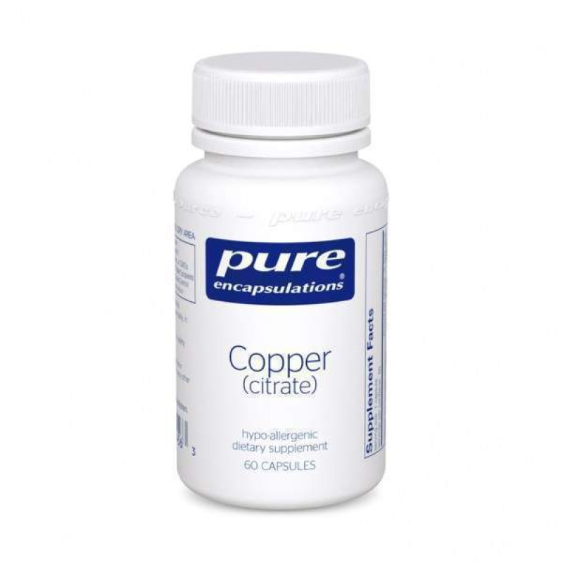 Медь (цитрат), Copper (citrate), Pure Encapsulations, форма меди с высокой биодоступностью, 60 капсул