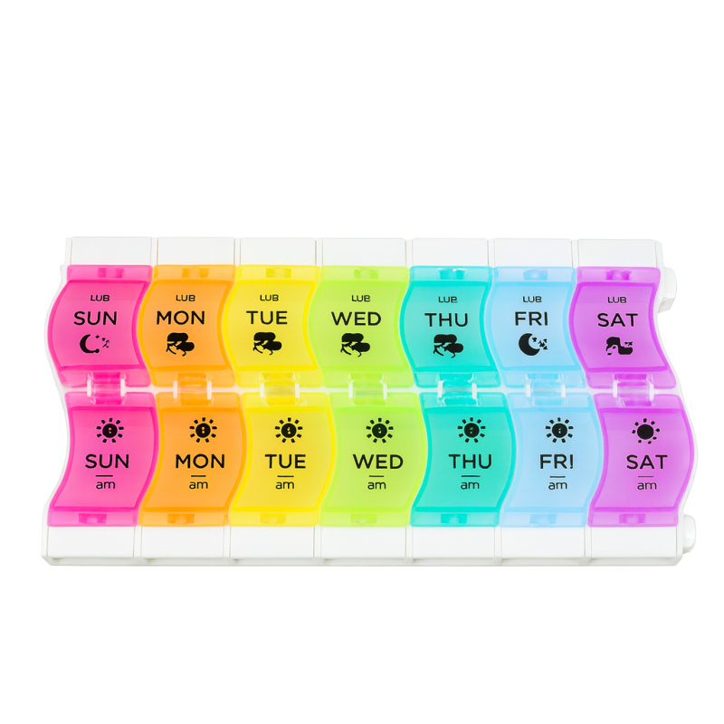 Органайзер для таблеток на 7 дней, 7 Days Pill Box, MEMOSAN, 2 раза в день, утром/ вечер, радужный