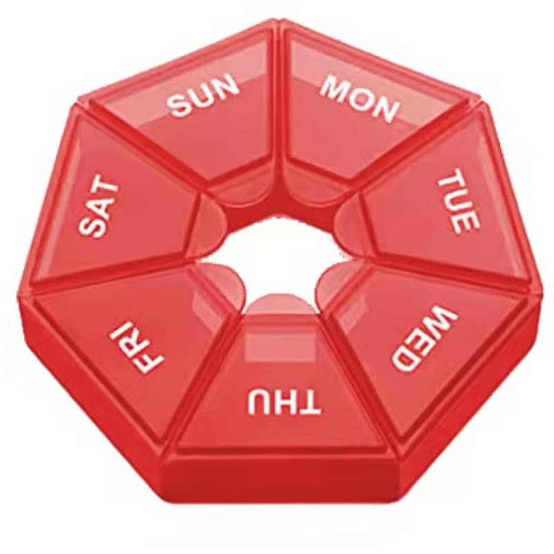 Органайзер для таблеток на 7 дней, 7 Side Pill box, MEMOSAN, красный