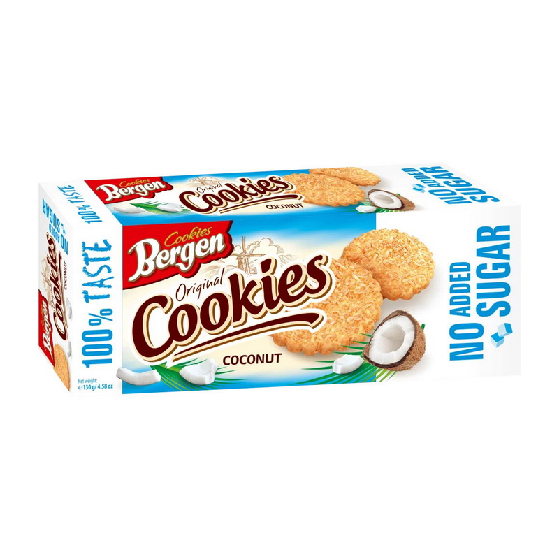 Original Cookies Coconut от Bergen Cookies – это десерт без добавленного сахара с кокосовым вкусом, который подойдет для умеренного перекуса и станет дополнением к ежедневному рациону.