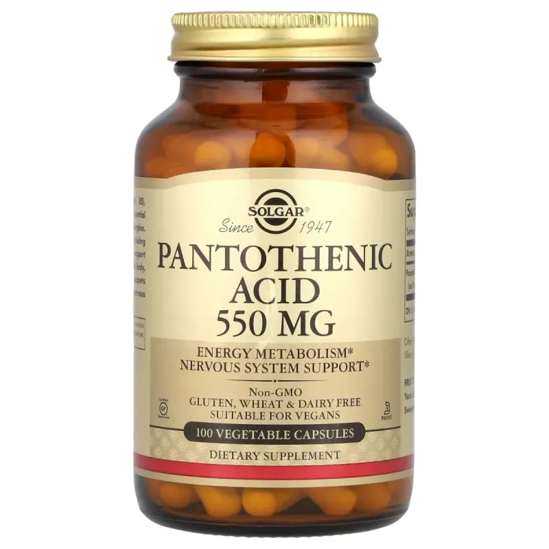 Пантотеновая кислота (витамин B5) является частью группы основных питательных веществ, известных как витамины группы B. Витамины группы B, в том числе пантотеновая кислота, поддерживают энергетический обмен в организме. Пантотеновая кислота также поддерживает здоровую нервную систему.