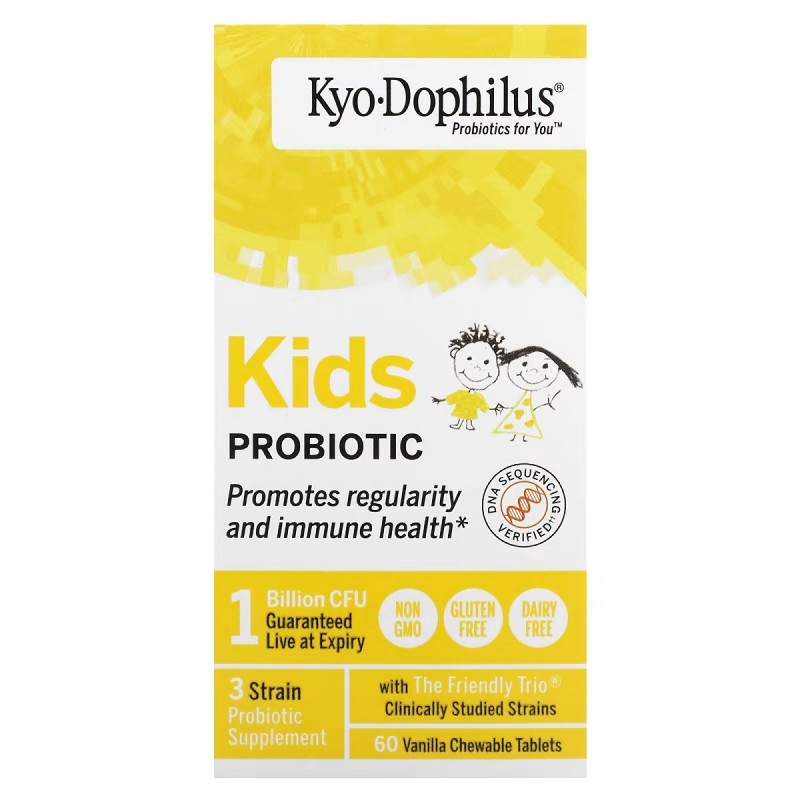 Это детский пробиотический комплекс, который способствует правильному пищеварению и лучшему усвоению всех питательных веществ, поступающих вместе с пищей, и нормализует перистальтику кишечника. Kyo-Dophilus® Kids Probiotic не только полезен и удобен в применении, но и имеет приятный ванильный вкус.