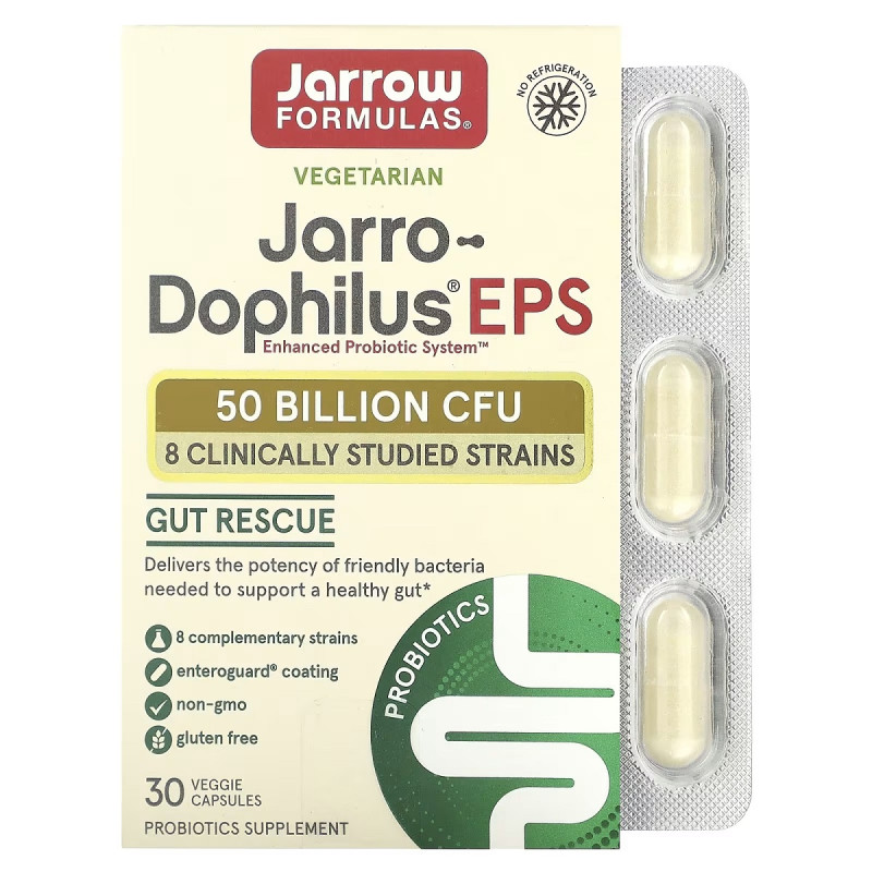 Этот пробиотический комплекс - это смесь 8 различных штаммов дружественных бактерий, содержащая 50 миллиардов жизнеспособных клеток для поддержания здоровья пищеварительной системы, баланса микрофлоры в кишечнике и иммунитета. Пробиотики Jarro-Dophilus EPS® стабильны при комнатной температуре и не требуют хранения в холодильнике.