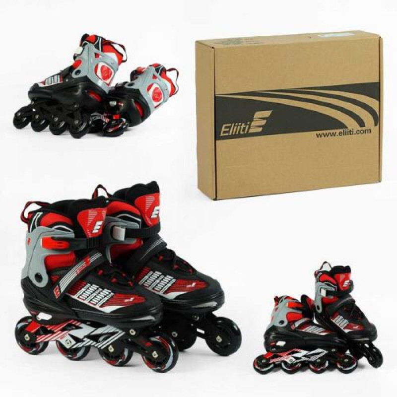 Особенности:- материал колес – PU;- диаметр колес – 7 см;- длина стельки – 27-29 см;- регулируемый размер 42-45;- застежка: липучка, шнуровка, бакля;- ботинок надежно фиксирует ногу.