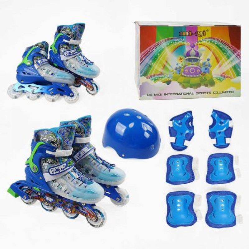 Ролики 9678-31 L размер 39-43 (6) цвет СИНИЙ, колеса PU, d колес – 6 см, стелька 24 см, подсветка колес, шлем, защита, в коробке