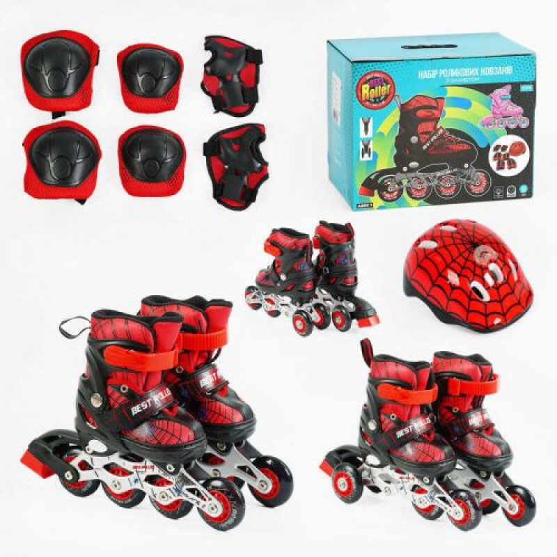 Ролики (размер 26-28 (6) цвет КРАСНЫЙ, колеса PVC, d колес – 6 см, стелька 15-17 см, переднее со светом, переставные колеса, шлем, защита, в коробке)