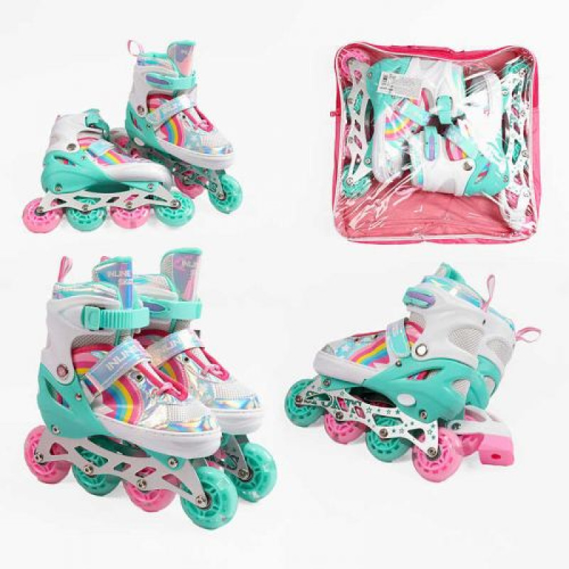 Ролики размер 29-33 (6) цвет Бирюзовый, стелька 18-21 см, колеса PU, d колес – 6 см, подсветка колес, в сумке