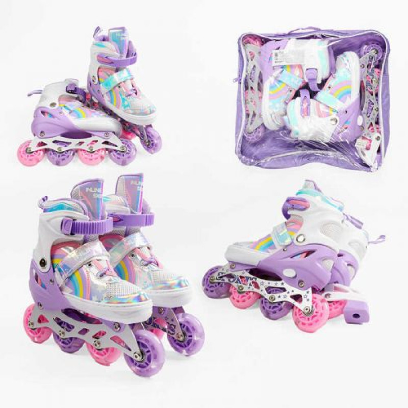 Ролики размер 29-33 (6) цвет Фиолетовый, стелька 18-21 см, колеса PU, d колес – 6 см, подсветка колес, в сумке