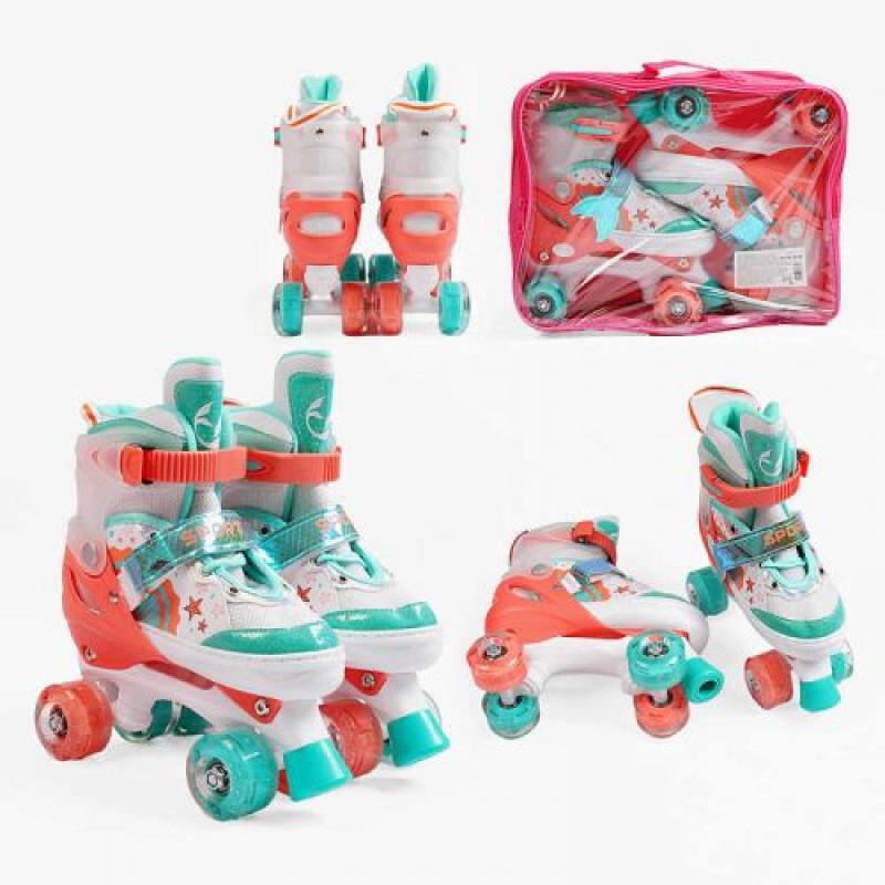 Ролики размер 34-38 (6) цвет Коралловый, стелька 21-24 см, колеса PU, КОЛЕСА СО СВЕТОМ, d колес – 4,5 см, в сумке