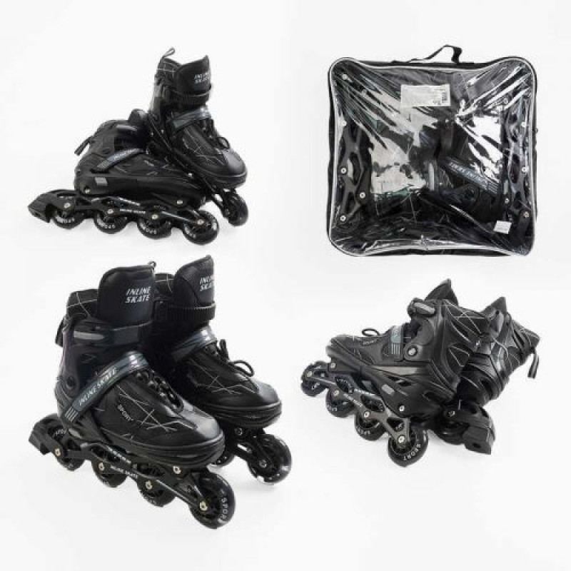 Ролики (размер 39-43; цвет – ЧЕРНЫЙ, колеса PU, стелька 24-28 см, ПЕРЕДНЕЕ КОЛЕСО СВЕТ, d – 6.5 см, в сумке)