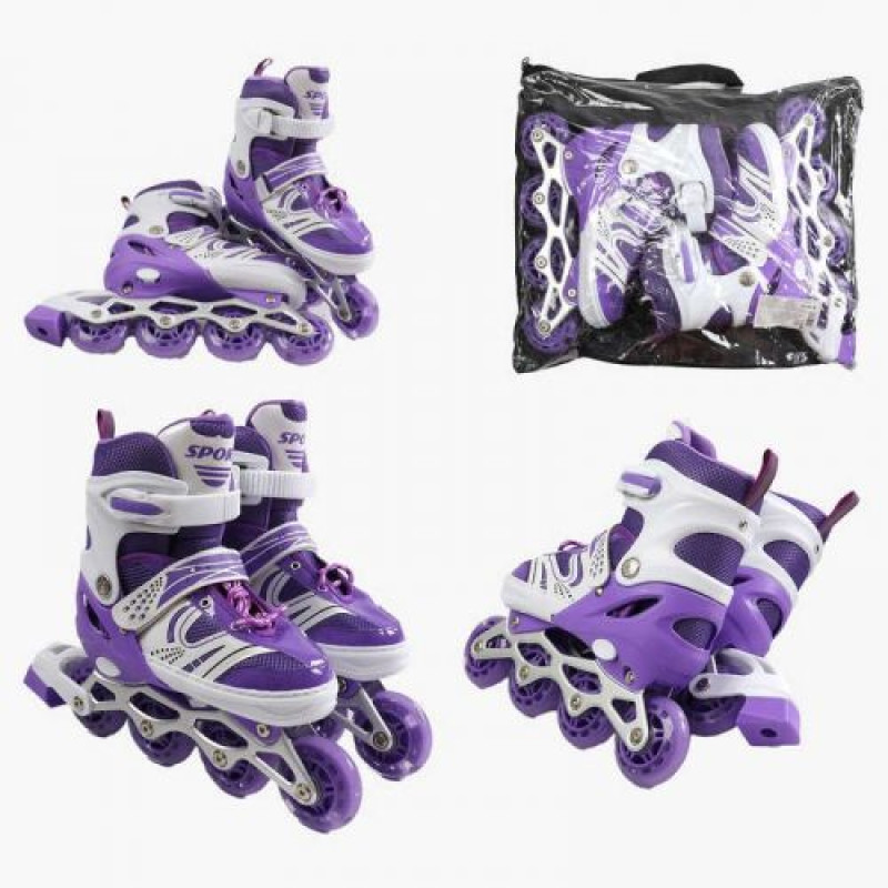Ролики /размер 39-43/ цвет – ФИОЛЕТОВЫЙ (6) колеса PU, ПЕРЕДНЕЕ КОЛЕСО СВЕТ, d – 6.5 см, в сумке