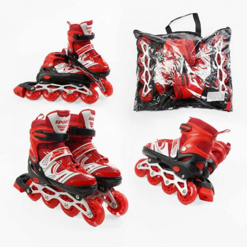Ролики (размер 39-43; цвет – КРАСНЫЙ (6) колеса PU, стелька 24-27 см, ПЕРЕДНЕЕ КОЛЕСО СВЕТ, d – 6.5 см) в сумке