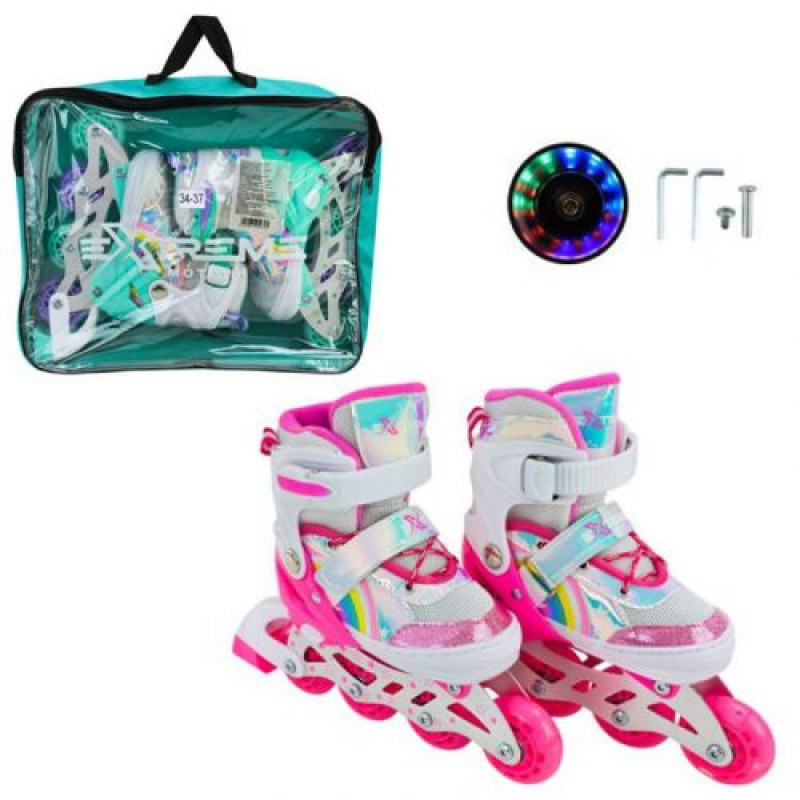 Роликовые коньки размер M (34-37) колеса PU 1 светло (РОЗОВЫЕ)