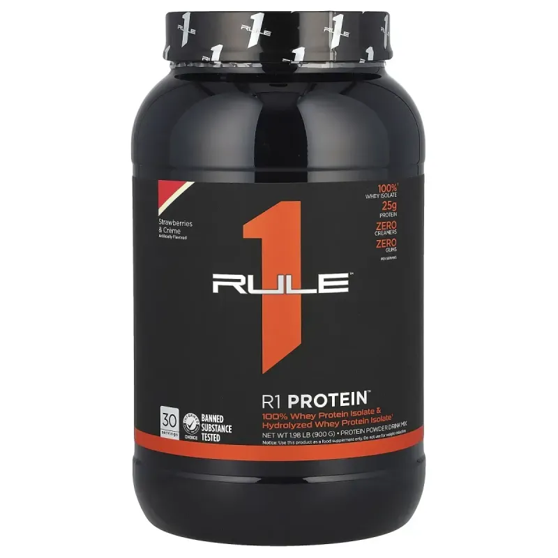 Rule One Proteins, R1 Protein Powder Drink Mix, Strawberries & Creme, 1.98 lb (900 g)