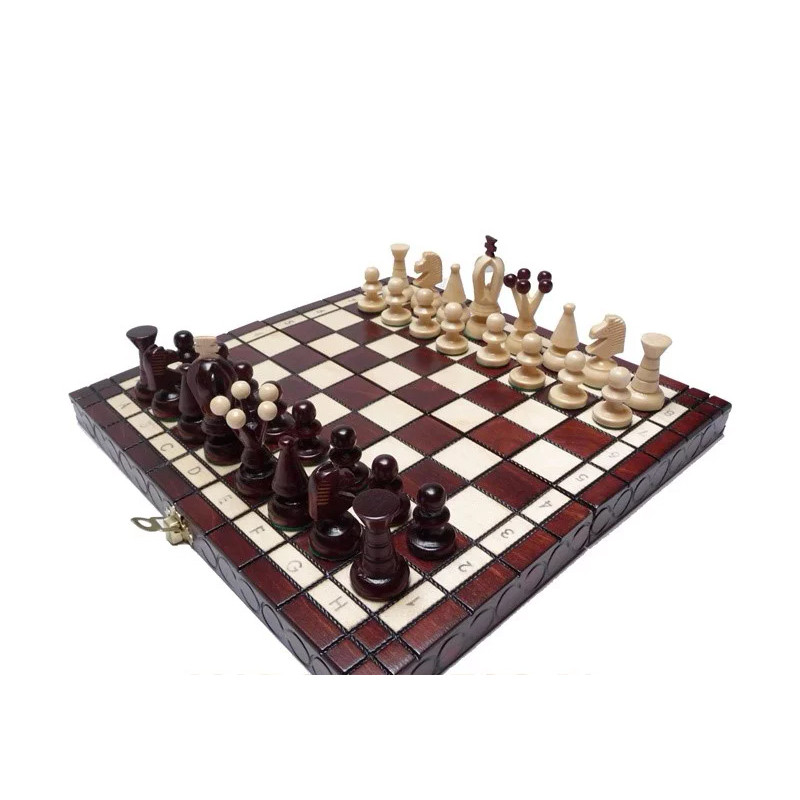 набір повністю дерев'яний чіткі фігури - ідеальні навіть для початківців фігурки склеєні фетром , що запобігає пошкодженню касети висока якість і дбайливе виконання все це вирізняється великою естетичністю Маленькі дерев'яні шахи ROYAL Розміри: касета (закрита): 28,5 см x 14,2 см x 4,5 см король: 6,5 см по вертикалі: 3,3 см вага: 0,5 кг Завдяки своїм невеликим розмірам вони чудово підходять як вдома, так і в подорожі.