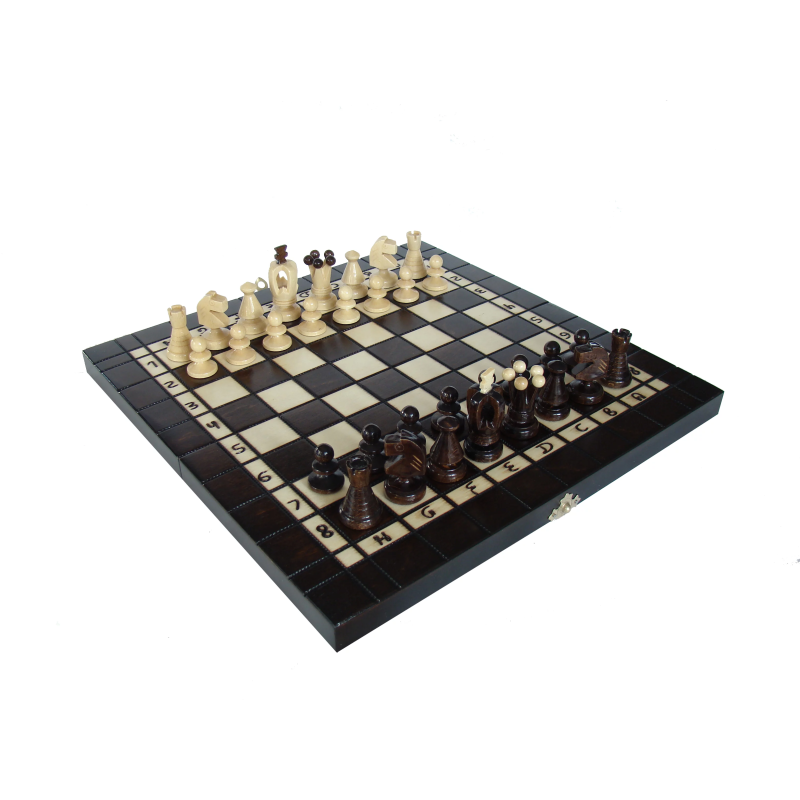 Чудовий варіант для шанувальників тактичних логічних ігор від відомого польського бренду. Комплект, що складається з трьох ігор, стане цінним надбанням, як для домашньої ігротеки, так і в якості дорожнього розваги. Із зовнішнього боку розкладний дошки, в якій зберігають фігури і фішки, нанесено шахове ігрове поле, а з внутрішньої - поле для нард. Також на зовнішній стороні використовується техніка випалювання. В комплект входить: дошка, 32 шахові фігури, 30 фішок (шашок) і 2 кубика (зари). Загальний розмір: 35см х 35см. Ігрове поле: 27см х 27 см. Клітина: 34мм. Висота короля: 65 мм. Висота пішака: 34 мм.