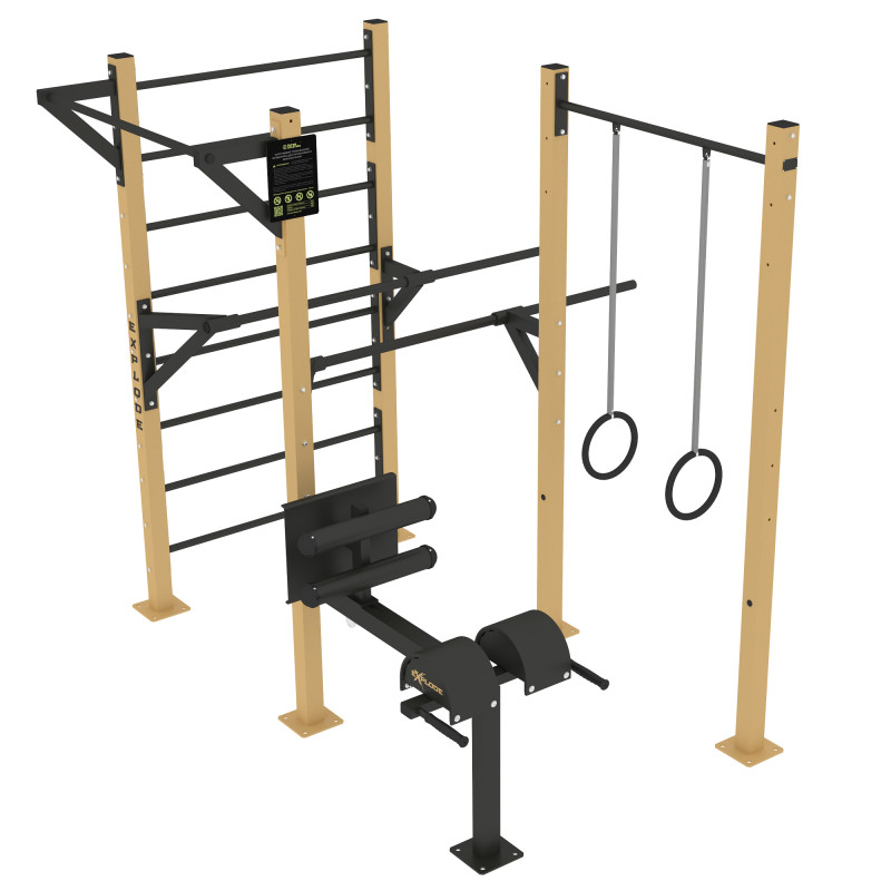 Комплекс адаптирован к любым погодным условиям. Установить спортивный инвентарь можно как на открытую площадку, так и в тренажерном зале, но для установления понадобится выделить 6,5 квадратных метров площади.