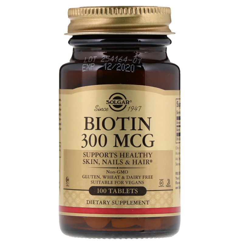 СКИДКА Биотин (В7) 300 мкг, Solgar, 100 таблеток (без плёнки)