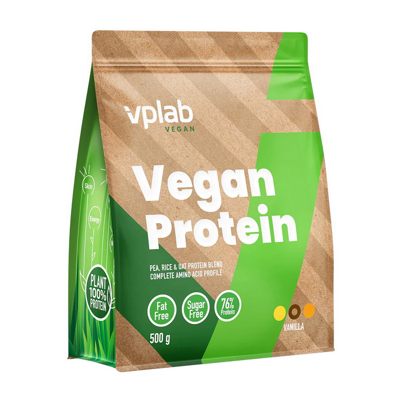 VPLab Vegan Protein – это отличное решение для веганов и всех, кто ищет качественный растительный протеин. Этот продукт сочетает в себе три мощных источника белка: изолят горохового белка, порошок овсяного белка и порошок рисового белка. Гороховый протеин имеет высокое содержание белка с лучшей растворимостью, а также является отличным источником калия и железа. Он способствует поддержанию мышц, костей, нормальной свертываемости крови и поддерживает здоровье сердца. Рисовый протеин – это растительный белок, который легко переваривается и хорошо усваивается организмом. Он поддерживает рост мышц и помогает поддерживать мышечную массу. Овсяный протеин обеспечивает длительное чувство сытости и содержит значительное количество BCAA и других незаменимых аминокислот. Таким образом, он способствует контролю веса, поддержанию мышечной массы и восстановлению. Преимущества Vegan Protein: Разнообразный белковый состав. Смесь гороха, риса и овса обеспечивает полный аминокислотный профиль. Высокое содержание белка. Содержание белка составляет 76%, что делает его отличным выбором для поддержания мышечной массы. Поддержка здоровья. Гороховый белок поддерживает мышцы и сердце, рисовый белок улучшает пищеварение, а овсяный белок способствует контролю веса. 100% веганский продукт. Все ингредиенты Vegan Protein гипоаллергенны и подходят для веганского питания. Протеиновая добавка на растительной основе VPLab Vegan Protein не только помогает достичь ежедневной потребности в белке, но и способствует наращиванию и восстановлению мышц. Это идеальный выбор для тех, кто стремится к здоровому образу жизни, без ущерба для вкуса и качества. Как принимать добавку Смешайте одну порцию (1 мерная ложка - 30 г) с 300 мл воды или сока. Пищевая ценность на порцию (30 г) 100 г Калорийность 113 ккал 377 ккал Жиры 1,2 г 4 г - насыщенные жиры 0,2 г 0,6 г Углеводы 2,6 г 8,8 г - из них сахара 1 г 3,2 г Клетчатка 0,3 г 0,9 г Протеин 22,8 г 76 г Соль 0,21 г 0,71 г Состав Изолят горохового протеина, порошок овсяного протеина, порошок рисового протеина, эмульгатор (лецитин подсолнечника), загуститель (карбоксиметилцеллюлоза), ароматизаторы, подсластитель (сукралоза). Фасовки 500 г - 16 порций.