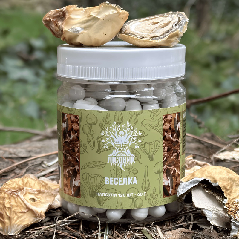 Веселка обычная "Лесовик", 120 капсул по 0,5 г - один из самых известных грибов народной медицины Европы, который естественно растет в лесах умеренного климата. Его уникальность заключается в чрезвычайно быстром росте и необычном цикле развития: на начальной стадии гриб имеет форму яйца, из-за чего получил народное название ведьмино яйцо. С античных времен его использовали в качестве природного тонизирующего и поддерживающего компонента для укрепления организма, а современные исследования обращают внимание на богатый состав полисахаридов и биологически активных веществ. Капсулы от Лесовика обеспечивают удобный формат микродозинга и стабильную концентрацию активных компонентов.