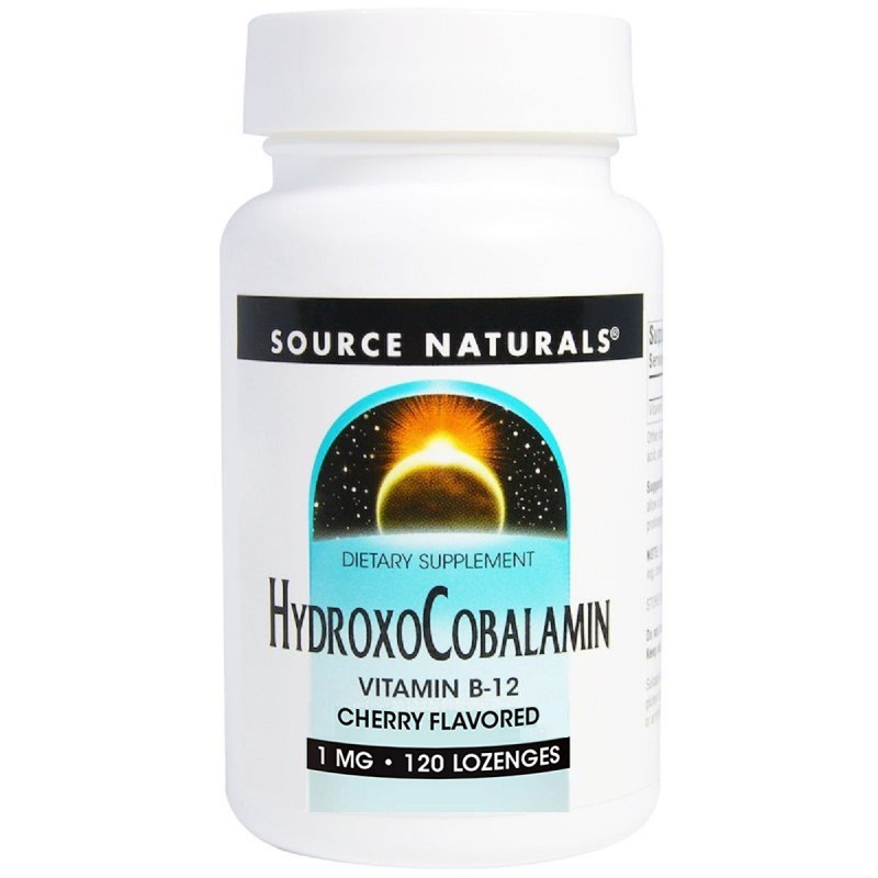 Витамин B12, 1 мг, Гидроксокобаламин, вкус вишни, Hydroxocobalamin, Source Naturals, 120 таблеток