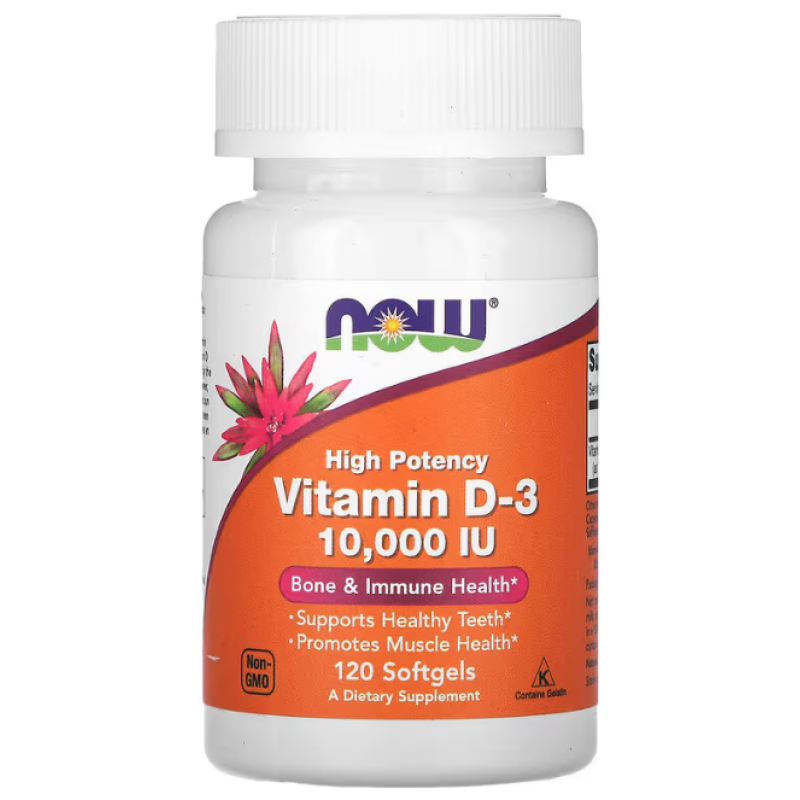 Витамин D-3, Vitamin D-3, NOW Foods, высокоэффективный, 10000 МЕ, 120 гелевых капсул