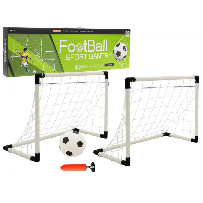 Набір містить усі необхідні аксесуари - сітку, насос та надувний м'яч, завдяки чому діти можуть почати гру відразу після складання воріт. Версія з одними великими воротами ідеально підходить для тренувань на точність або виконання штрафних ударів, тоді як двоє менших воріт - для традиційних командних видів спорту. Набір легко переносити та складати, що дозволяє швидко підготуватися до гри в будь-якому місці.