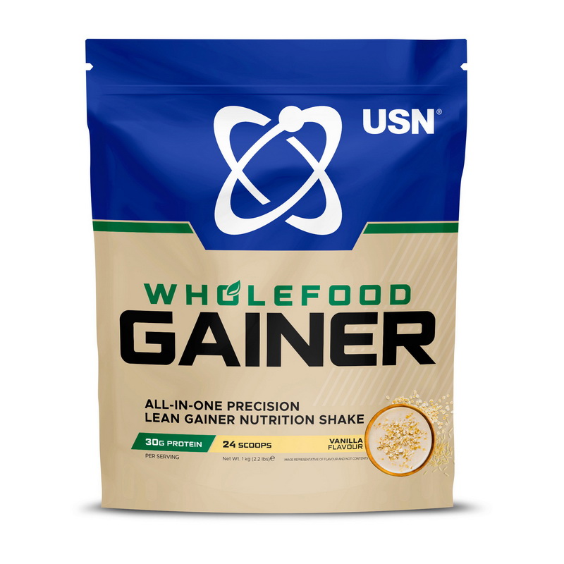 Wholefood Gainer от USN – это гейнер для наращивания мышечной массы и улучшения физической работоспособности. Этот углеводно-белковая добавка, созданный на основе цельных продуктов, представляет собой высококачественный источник питания, идеально подходящий для интенсивных тренировок. Основные преимущества USN Wholefood Gainer: 30 г 100% растительного белка на порцию для эффективного восстановления мышц и постоянного роста; отсутствие молочных продуктов и сои, что делает его идеальным для людей с аллергией или непереносимостью лактозы; содержит углеводы для быстрого восполнения запасов гликогена, особенно важно для тех, кто тренируется несколько раз в день; используются только цельные продукты для чистой и эффективной энергии. Состав USN Wholefood Gainer: овсяная мука и рисовая мука для углеводного заряда; концентрат рисового белка и изолят горохового белка – высококачественные источники белка; сладкий картофель, крахмал тапиоки, сок черной моркови и свекольный краситель для добавления натуральных вкусов и цвета; натуральные подсластители: сукралоза и стевиолгликозиды для приятного вкуса без лишних калорий. USN Wholefood Gainer идеально подходит для тех, кто ищет натуральный и эффективный способ улучшить свои спортивные результаты. Он помогает улучшить физическую работоспособность во время интенсивных тренировок и обеспечивает все необходимое для быстрого восстановления и роста мышечной массы. Как принимать добавку Смешайте одну порцию (3 мерные ложки - 125 г) с 400-500 мл холодной воды. Хорошо встряхивайте в течение 30 секунд, дайте настоятся 60 секунд и еще раз встряхните перед употреблением. Используйте в качестве восстанавливающего напитка через 30 минут после тренировки и/или в качестве перекуса между приемами пищи. Вкус Banana Blueberry Pancake Пищевая ценность 125 г 100 г Калорийность 474 ккал 379 ккал Жиры 7,9 г 6,3 г - из них насыщенные жиры 1,6 г 1,3 г Углеводы 70 г 56 г - из них сахара 0,9 г 0,7 г Клетчатка 4,8 г 3,8 г Протеин 30 г 24 г Соль 1,2 г 0,99 г Аминокислотный профиль на 100 г L-аланин 1,23 г L-аргинин 1,87 г L-аспарагиновая кислота 2,2 г L-цистин 0,66 г L-глютаминовая кислота 4,59 г Глицин 1,09 г L-гистидин 0,62 г L-изолейцин 0,99 г L-лейцин 1,93 г L-лизин 1,17 г L-метионин 0,48 г L-фенилаланин 1,28 г L-пролин 1,13 г L-серин 1,02 г L-треонин 0,74 г L-триптофан 0,32 г L-тирозин 0,85 г L-валин 1,39 г Состав Овсяная мука (содержит глютен), концентрат рисового белка, рисовая мука, изолят горохового белка, ароматизаторы, соль, порошок сладкого картофеля, крахмал тапиоки, загуститель (ксантановая камедь), подсластители (сукралоза, стевиолгликозиды (из стевии)), концентрат сока черной моркови (Daucus carota L.), краситель (свекольный красный (Beta vulgaris)). Аллергены: овсяная мука. Фасовки 1 кг - 8 порций, 2 кг - 16 порций.