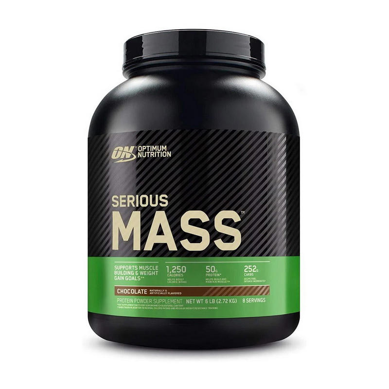 Serious Mass – это продвинутая формула для набора массы и стимуляции мышечного роста от Optimum Nutrition. Этот гейнер обеспечивает 1250 калорий и 50 г белка в каждой, что делает его идеальным выбором для восстановления после тренировок и как питательный коктейль между приемами пищи. Ключевые характеристики и преимущества Serious Mass: Каждая порция содержит 1250 калорий, что помогает увеличить дневной калораж и способствует быстрому набору массы. 50 г белка в каждой порции способствуют наращиванию и поддержанию мышечной массы, а также ускоряют восстановление мышц после физических нагрузок. 252-254 г углеводов в каждой порции обеспечивают необходимую энергию для тренировок и помогают восполнить запасы гликогена в мышцах. 5 г креатина моногидрата на порцию улучшают результаты в тренировках, способствуя увеличению силы и выносливости. Включает 25 важнейших витаминов и минералов, которые поддерживают общее здоровье и помогают оптимизировать результаты тренировок. Гейнер Serious Mass идеально подходит для атлетов и бодибилдеров, стремящихся к увеличению мышечной массы и общего калорийного потребления. Он особенно полезен для тех, кто испытывает трудности с набором веса и хочет эффективно увеличить массу тела. Serious Mass от Optimum Nutrition – это надежный и эффективный способ достичь ваших целей в наборе массы и укреплении мышц. Благодаря своему составу и высокой калорийности, он поможет вам стать сильнее, больше и выносливее. Как принимать добавку Смешайте одну порцию (2 мерные ложки - 340 г) с 720 мл холодной воды или молока. Лицам, которые принимают гейнер впервые, рекомендуется начинать с 1/2 порции в течение первой недели, после чего постепенно увеличить дозу до 1 порции. Используйте после тренировки и/или между приемами пищи, чтобы добавить калории, углеводы и белки в свой здоровый, сбалансированный рацион. Пищевая ценность в одной порции (340 г) Калорийность 1260 ккал Всего жиров 5 г - из них насыщенные жиры 3 г Холестерин 200 мг Всего углеводов 253 г - из них сахара 30 г   - добавленного сахара 8 г Протеин 50 г Витамин A (ацетат) 340 мкг Витамин С (аскорбат натрия) 30 мг Витамин E (dl-альфа токоферола ацетат) 4 мг Тиамин (тиамин гидрохлорид) 0,4 мг Рибофлавин 0,9 мг Ниацин (ниацинамид) 4 мг Витамин B6 (пиридоксин гидрохлорид) 0,4 мг Фолат (фолиевая кислота) 170 мкг DFE (100 мкг фолиевой кислоты) Витамин B12 (цианокобаламин) 1,6 мкг Биотин (d-биотин) 60 мкг Пантотеновая кислота (d-кальция пантотенат) 3 мг Кальций (кальция карбонат, кальция фосфат) 700 мг Железо (фумарат железа) 5,8 мг Йод (калия йодид) 23 мкг Магний (магния фосфат) 140 мг Цинк (цинка оксид) 3 мг Медь (меди глюконат) 0,4 мг Марганец (марганца сульфат) 0,4 мг Натрий  680 мг Калий 940 мг Креатин моногидрат 5 г Другие ингредиенты Мальтодекстрин, концентрат сывороточного протеина, натуральные и искусственные ароматизаторы, сафлоровое масло и/или соевый лецитин, подсластитель (ацесульфам К, сукралоза). Содержит: молоко, соя. Фасовки 1,36 кг - 4 порции, 2,72 кг - 8 порций, 5,44 кг - 16 порций.