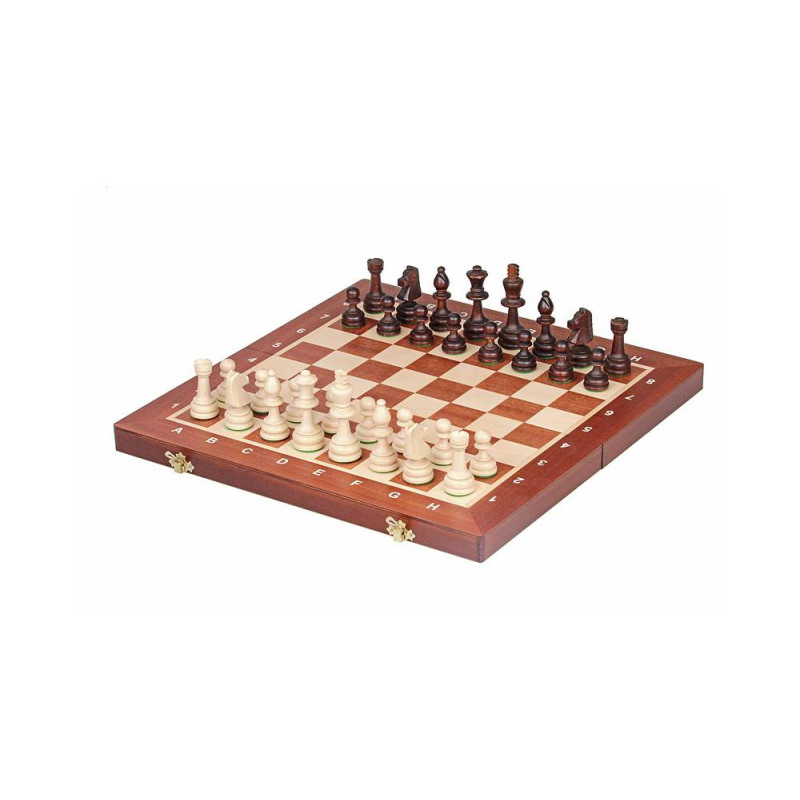 Шахи, представлені польським виробником Madon, і стануть ідеальним ігровим комплектом для будинку або проведення турнірних змагань. Оригінальний дизайн і компактні розміри певним чином втілюють в собі класичні традиції, які формувалися з давніх часів. Дошка інтарсія виготовляється з натурального дерева, що забезпечує міцність і довгий термін служби, а дизайн шахових фігур Стаунтон, який був запропонований в середині XIX столітті, вважається стандартом і понині, і підкреслює особливу витонченість комплекту. 32 шахові фігури; 1 складана шахівниця; сумка чохол. Загальний розмір: 40,5 см х 40,5 см. Ігрове поле: 33 см х 33 см. Клітина: 40 мм. Висота короля: 85 мм. Висота пішака: 40 мм.